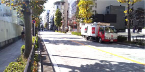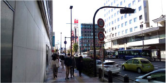 いちよし証券さんが目印の交差点を渡る